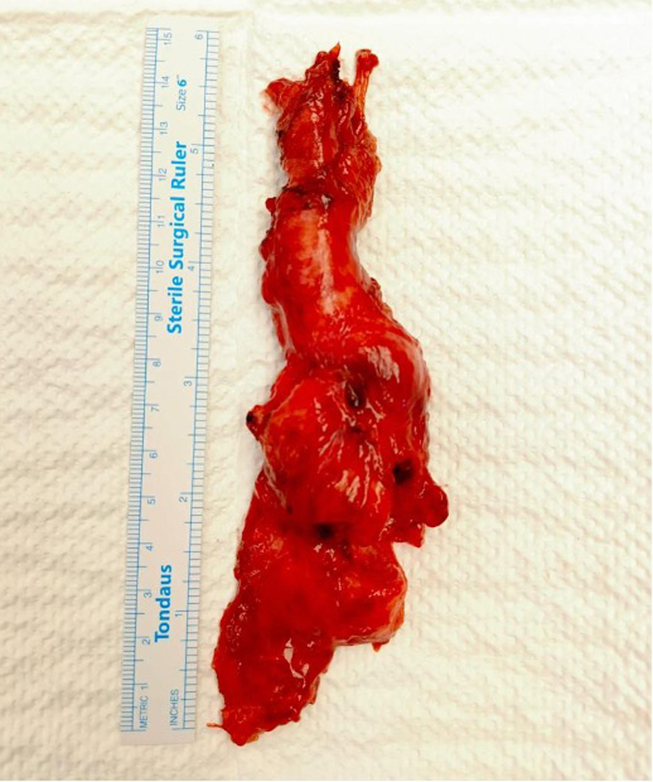 ![]() Click for large image | Figure 3. Gross specimen of the excised left ureter measuring approximately 15 cm. |