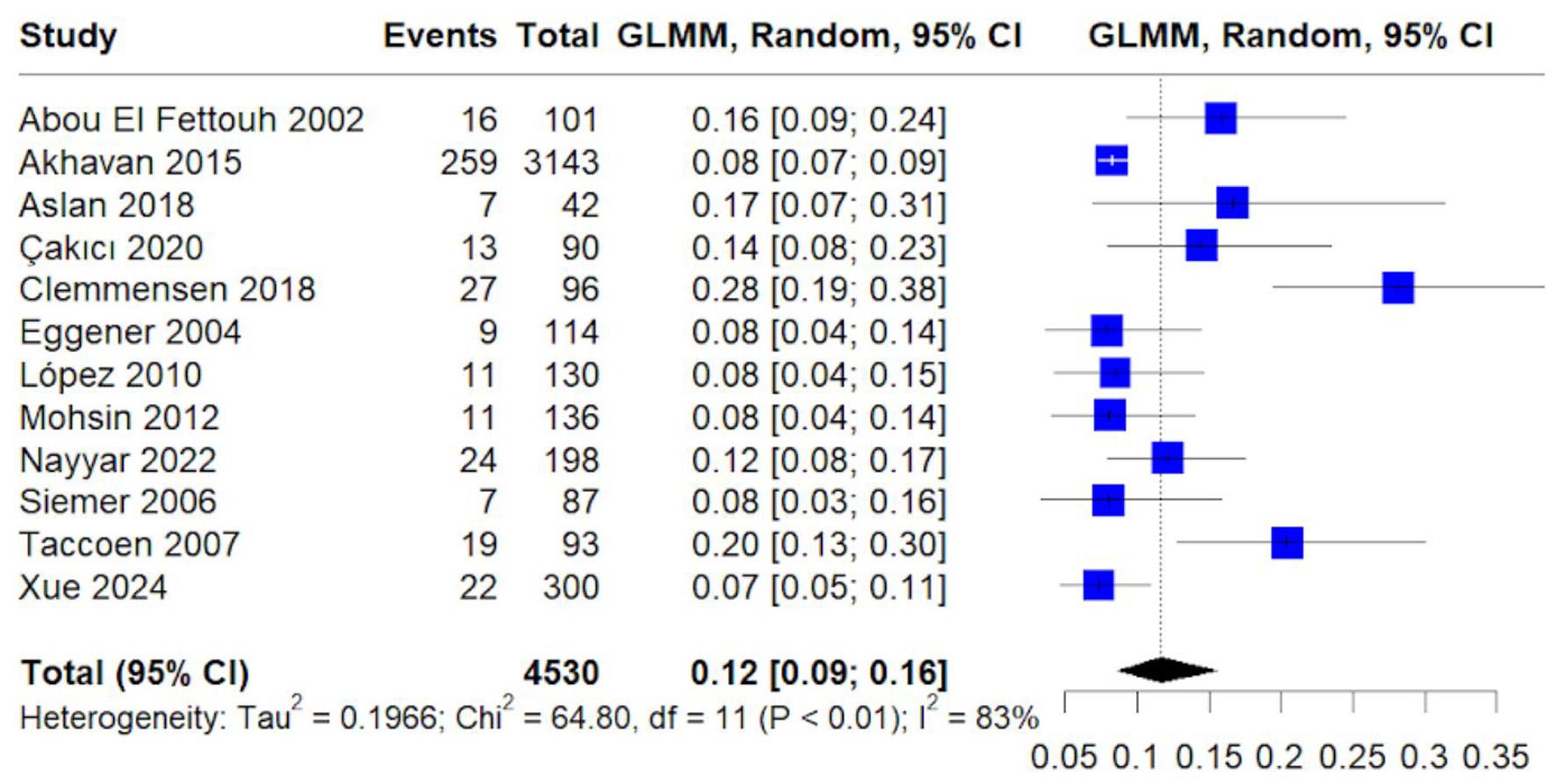 Papillary histology accounted for 12% of cases (95% CI: 9–16%) (Fig. 6). Heterogeneity was moderate to high (I2 = 83%), likely reflecting differences in cohort composition and histologic classification across studies.