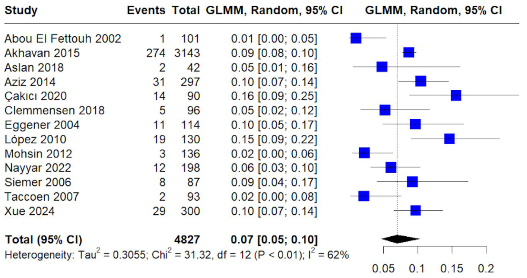 Statistical heterogeneity was evaluated using the I2 statistic, tau-squared (τ2), and the Chi-squared (Q) test. Visual inspection of forest plots further supported the assessment of heterogeneity across studies.